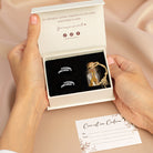 À l’ouverture de l’écrin, l’élégance de la rose et l’éclat des bagues créent un moment émouvant et inoubliable.